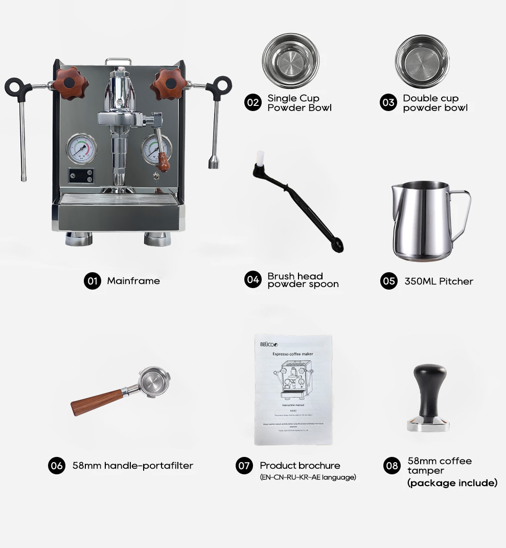 The machine uses 58 mm portafilters — the same standard found on many commercial espresso machines. This opens the door to using a wide range of baskets, tampers, and accessories, giving you flexibility to explore or upgrade your setup.